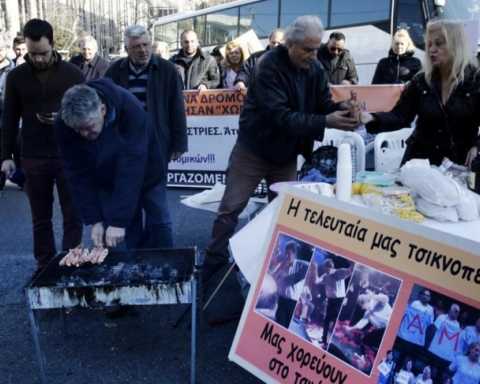 ΠερισσότεραΣυγκέντρωση διαμαρτυρίας έξω από τη Βουλή με σουβλάκια ανήμερα της Τσικνοπέμπτης πραγματοποιούν μέλη της ΠΟΕΔΗΝ και καθαρίστριες από το Δρομοκαΐτειο.
