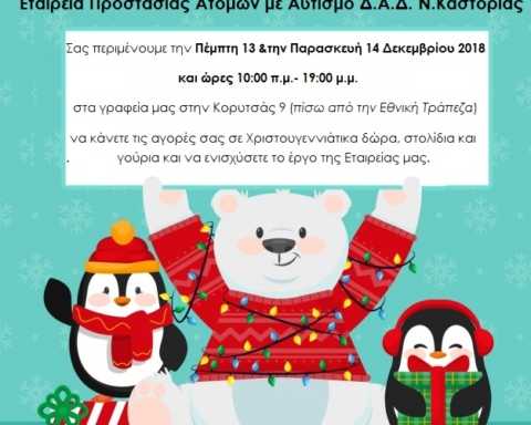 ΠερισσότεραΠρόσκληση στο Χριστουγεννιάτικο Bazaar της Εταιρείας Προστασίας Ατόμων με Αυτισμό Δ.Α.Δ. Ν. Καστοριάς Σας περιμένουμε την Πέμπτη 13