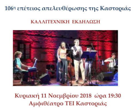 ΠερισσότεραΈχει ήδη καθιερωθεί οι εορτασμοί για την απελευθέρωση της Καστοριάς να ολοκληρώνονται με μία καλλιτεχνική εκδήλωση. Έτσι, το βράδυ της
