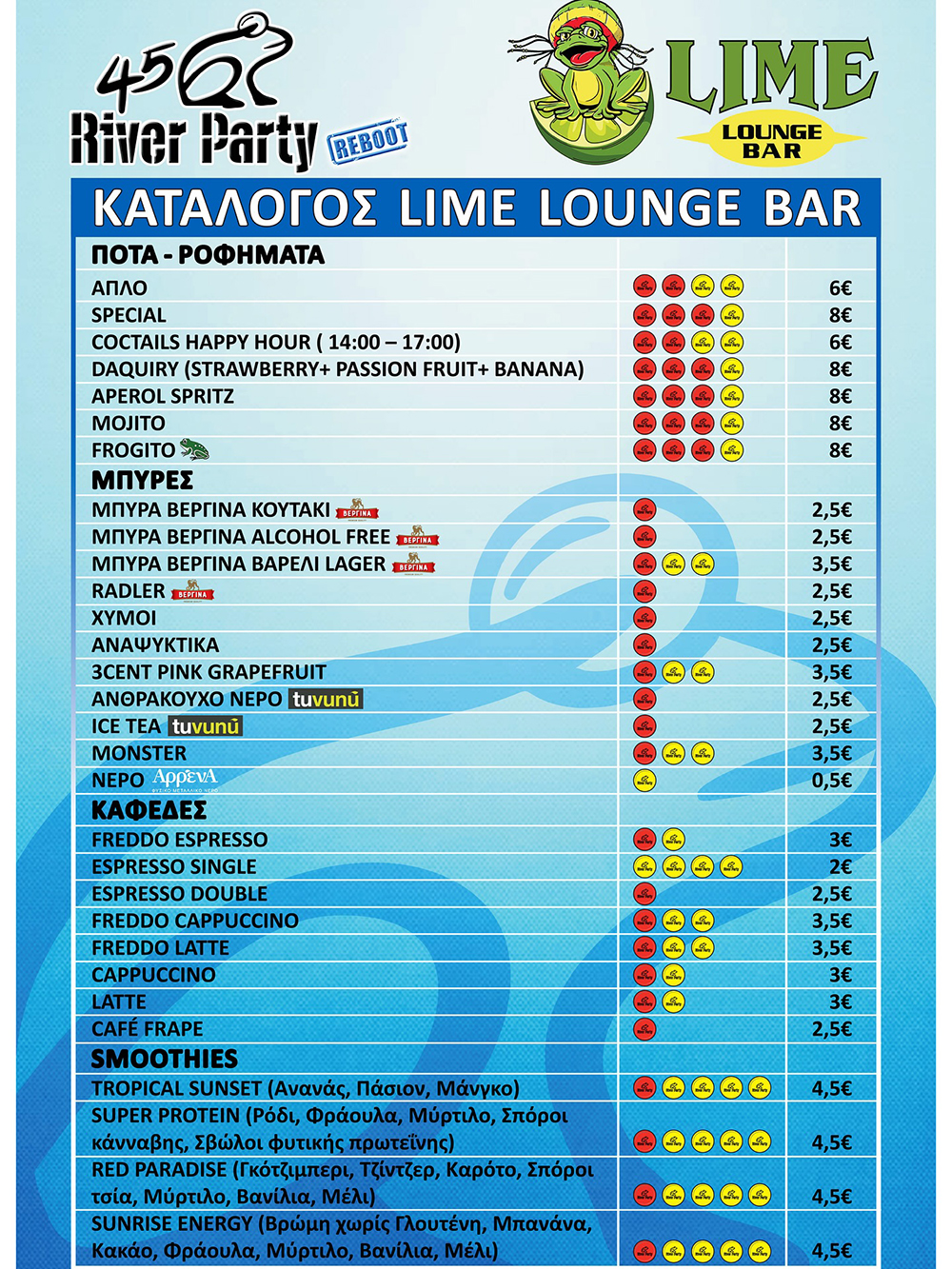 Μέσα στην καρδιά του φεστιβάλ, εκεί που η μουσική σμίγει με τη φύση και το ποτάμι, σε περιμένει το πιο δροσερό και απολαυστικό στέκι του River Party το LIME LOUNGE BAR!