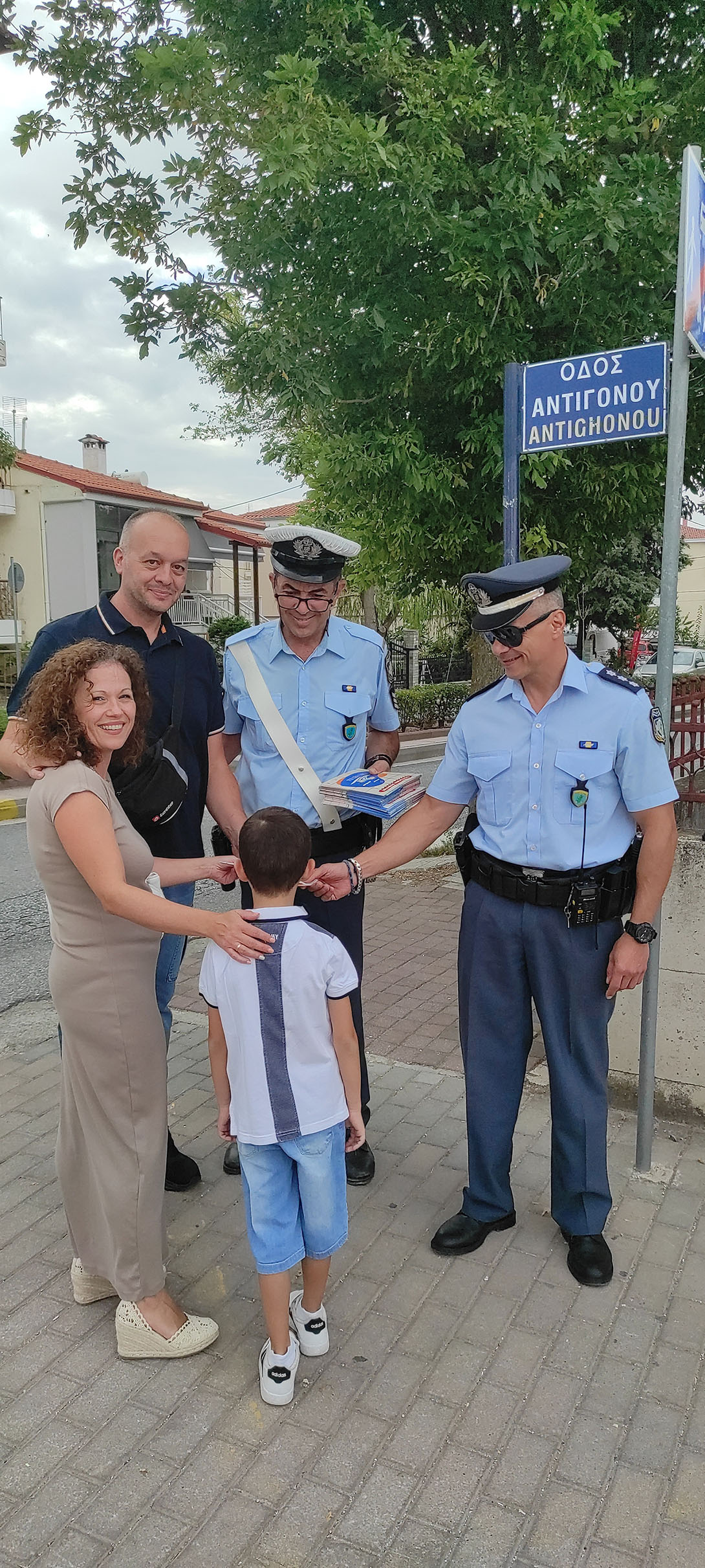 Τα ενημερωτικά φυλλάδια διανεμήθηκαν σε μαθητές Δημοτικών Σχολείων, καθώς και στους γονείς τους, κατά την προσέλευσή τους στα σχολικά συγκροτήματα των Γρεβενών, της Καστοριάς, της Κοζάνης, της Πτολεμαΐδας και της Φλώρινας, ενόψει της καθιερωμένης τελετής του Αγιασμού για τη νέα σχολική χρονιά, με σκοπό την ενίσχυση της ενημέρωσης και της πρόληψης, σχετικά με την οδική ασφάλεια και την προαγωγή υπεύθυνης οδικής συμπεριφοράς.
