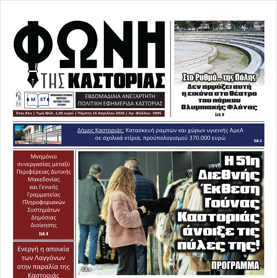 Κατά τον μήνα Μάρτιο του 2026, ο Δήμος Καστοριάς συνέχισε δυναμικά το έργο του, υλοποιώντας παρεμβάσεις σε υποδομές και καθημερινότητα, προχωρώντας έργα σε εξέλιξη, ενισχύοντας τις συνεργασίες με φορείς και διοργανώνοντας δράσεις πολιτιστικού και κοινωνικού χαρακτήρα, με στόχο τη βελτίωση της ποιότητας ζωής των πολιτών.