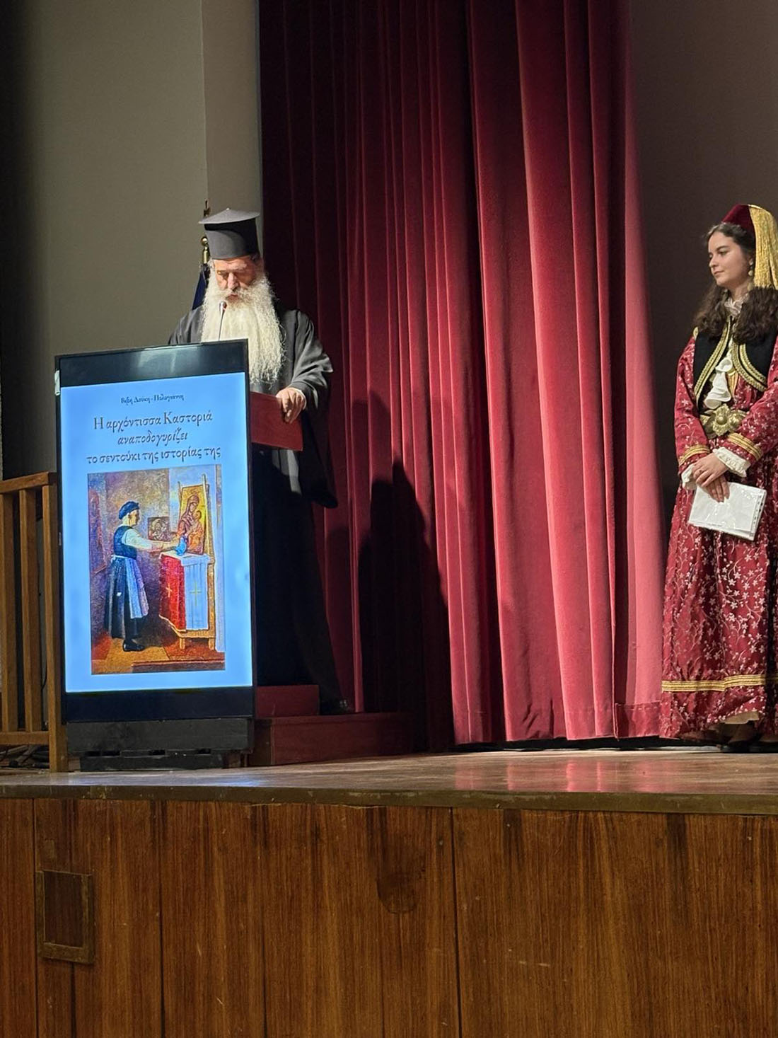 Την εκδήλωση τίμησαν με την παρουσία τους, και τους ευχαριστώ θερμά, ο Θεοφιλέστατος Επίσκοπος Ρωγων κ. Φιλόθεος ως εκπρόσωπος του Μακαριωτάτου Αρχιεπισκόπου κ. Ιερώνυμου, ο Σεβασμιώτατος Μητροπολίτης Περιστερίου κ. Γρηγόριος, η βουλευτής του νομού Καστοριάς κ. Μαρία Αντωνίου, ο Δήμαρχος Καστοριάς κ. Γιάννης Κορεντσίδης, οι οποίοι και χαιρέτισαν την εκδήλωση.