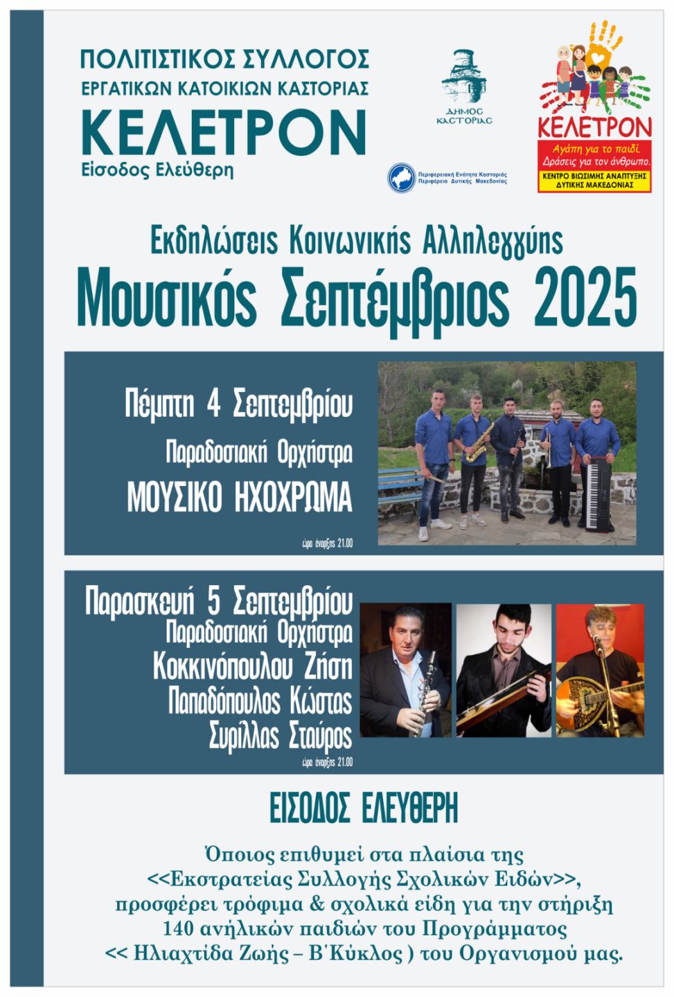 Διοργάνωση: Πολιτιστικός Σύλλογος Κέλετρον – και Κέλετρον Αγάπη για το Παιδί