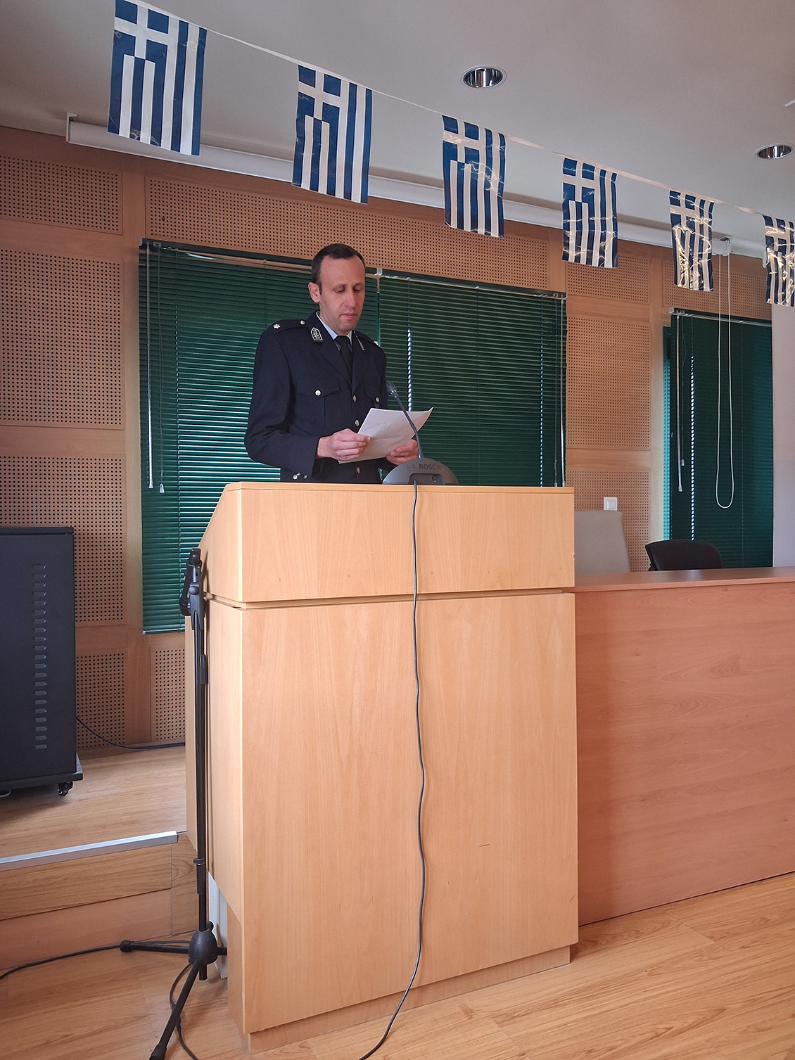 Εκφώνηση Πανηγυρικού λόγου στο πλαίσιο εορτασμού της Εθνικής Επετείου της «25ης Μαρτίου» στις έδρες των Διευθύνσεων Αστυνομίας της Γενικής Περιφερειακής Αστυνομικής Διεύθυνσης Δυτικής Μακεδονίας