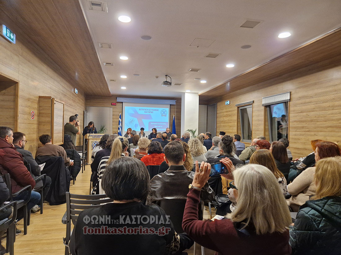 Αυτό ήταν το μήνυμα της εκδήλωσης με θέμα: «Αστυνομία και Κοινωνία: Μαζί ενάντια στην Ενδοοικογενειακή Βία» την οποία διοργάνωσε το απόγευμα, η Διεύθυνση Αστυνομίας Καστοριάς, στην αίθουσα του Αστυνομικού Μεγάρου.