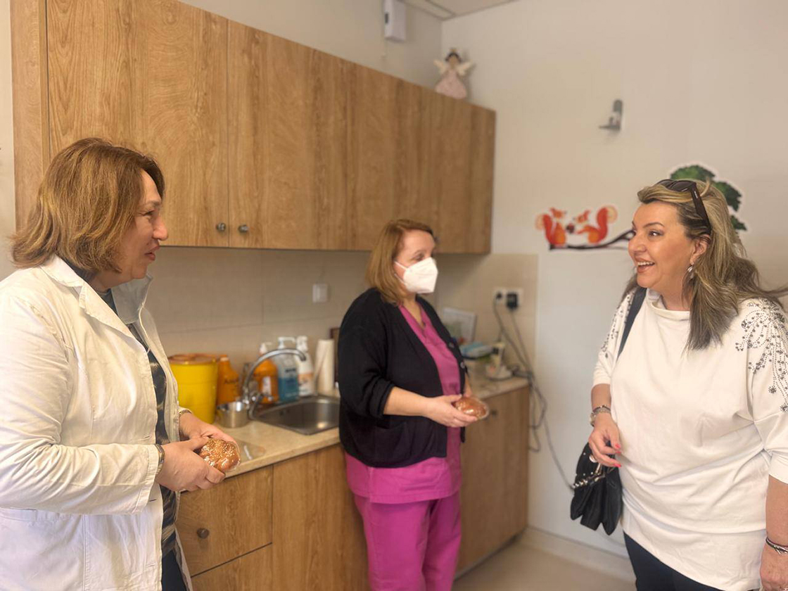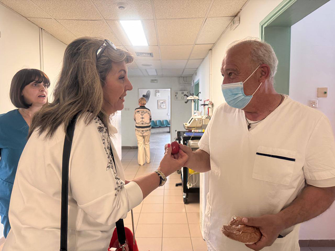 Το Γενικό Νοσοκομείο Καστοριάς επισκέφθηκε ανήμερα του Πάσχα η Βουλευτής Μαρία Αντωνίου προκειμένου να ανταλλάξει ευχές με το ιατρικό και νοσηλευτικό προσωπικό και με τους ασθενείς.