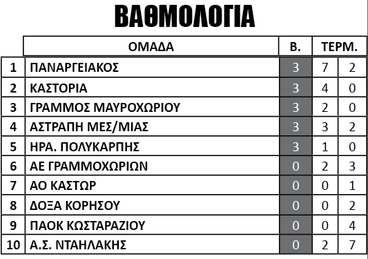 ΠΑΟΚ ΚΩΣΤΑΡΑΖΙΟΥ – ΚΑΣΤΟΡΙΑ 0 – 4
