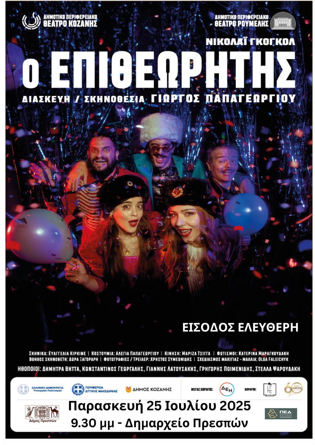 “Ο Επιθεωρητής ” του Νικολάι Γκόγκολ, έρχεται την Παρασκευή 25 Ιουλίου, στις 21:30 στο Λαιμό Πρεσπών, στον αύλειο χώρο του Δημαρχείου, με την υποστήριξη του Δήμου Πρεσπών.