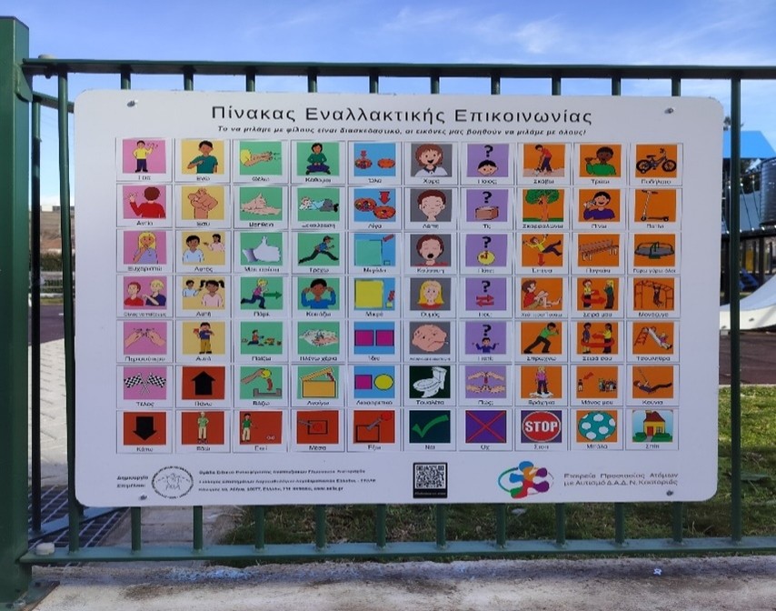Την τοποθέτηση πινάκων εναλλακτικής επικοινωνίας στις παιδικές χαρές της Χλόης, του Ντολτσό, του πάρκου Ολυμπιακής Φλόγας και της πλατείας Μανιάκων. Οι πίνακες αυτοί διευκολύνουν την επικοινωνία μη λεκτικών ατόμων στο φάσμα του αυτισμού