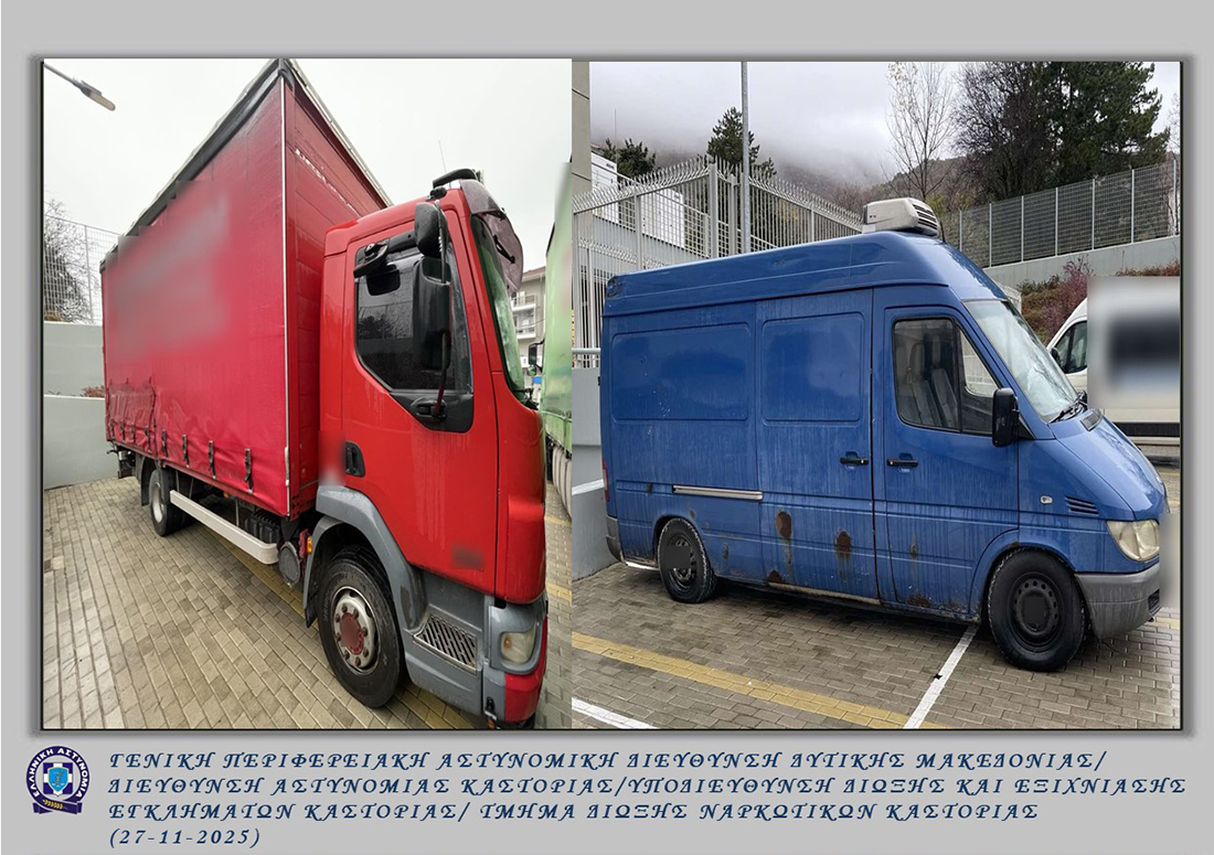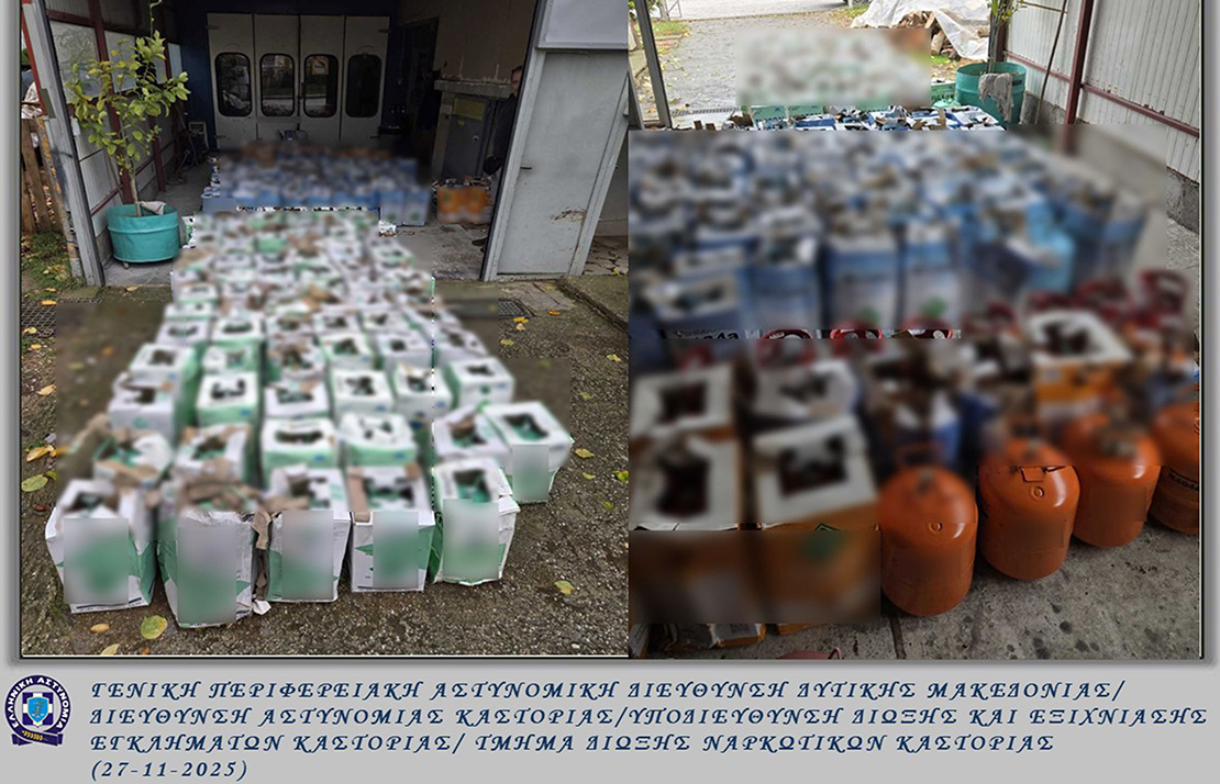 Συγκεκριμένα, στο πλαίσιο στοχευμένων δράσεων για την αντιμετώπιση της λαθρεμπορίας και κατόπιν συνεργασίας με την Ανεξάρτητη Αρχή Δημοσίων Εσόδων / Τελωνείο Καστοριάς, μετά από κατάλληλη αξιοποίηση πληροφοριών και στοιχείων, από τους προαναφερόμενους αστυνομικούς εντοπίσθηκαν προχθές (26-11-2025) το πρωί, σε περιοχή της Καστοριάς, να κινούνται ύποπτα –2- οχήματα, ένα Ι.Χ.Φ. και ένα Ι.Χ.Ε. με οδηγούς 38χρονο και 40χρονο αντίστοιχα και συνεπιβάτη στο Ι.Χ.Ε. όχημα έναν 44χρονο και σε έρευνα που πραγματοποιήθηκε, βρέθηκαν και κατασχέθηκαν στο χώρο φόρτωσης του Ι.Χ.Φ. αυτοκινήτου, –226– μεταλλικές φιάλες περιέχουσες φθοριούχο ψυκτικό αέριο (φρέον), συνολικού βάρους -2- τόνων και -504,20- κιλών, εμπορικής αξίας 101.500 ευρώ περίπου, ενώ το Ι.Χ.Ε. όχημα λειτουργούσε υποστηρικτικά συνδράμοντας στην απρόσκοπτη μεταφορά των παράνομων φιαλών.