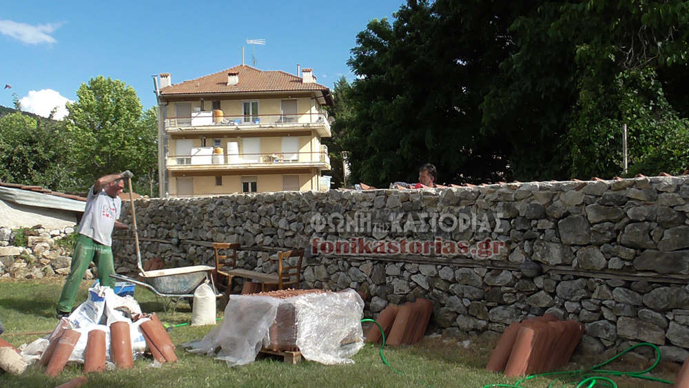 Προμηθευτήκαμε υλικά από τον Δήμο Καστοριάς και έτσι αυτό το διάστημα ασχολούμαστε με τον μαντρότοιχο. Πιστεύω ότι μαζί με την όμορφη αυλή που έχουμε κάνει, το αρχοντικό αποκτά και εξωτερικά μια πολύ καλή εικόνα», ανέφερε ο πρόεδρος του Μ/Σ Αρμονία Μιχάλης Ζήλας.