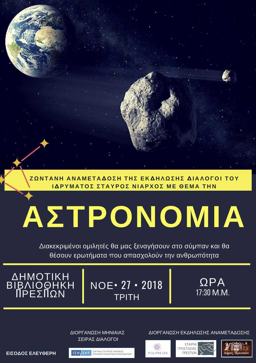Την Τρίτη 27 Νοεμβρίου, στις 17:30, η Δημοτική Βιβλιοθήκη Πρεσπών συνδέεται ζωντανά με το Νέο Ψηφιακό Πλανητάριο του Ιδρύματος Ευγενίδου, σε μια συζήτηση με θέμα την ΑΣΤΡΟΝΟΜΙΑ, για ενήλικες και παιδιά Γυμνασίου και Λυκείου.