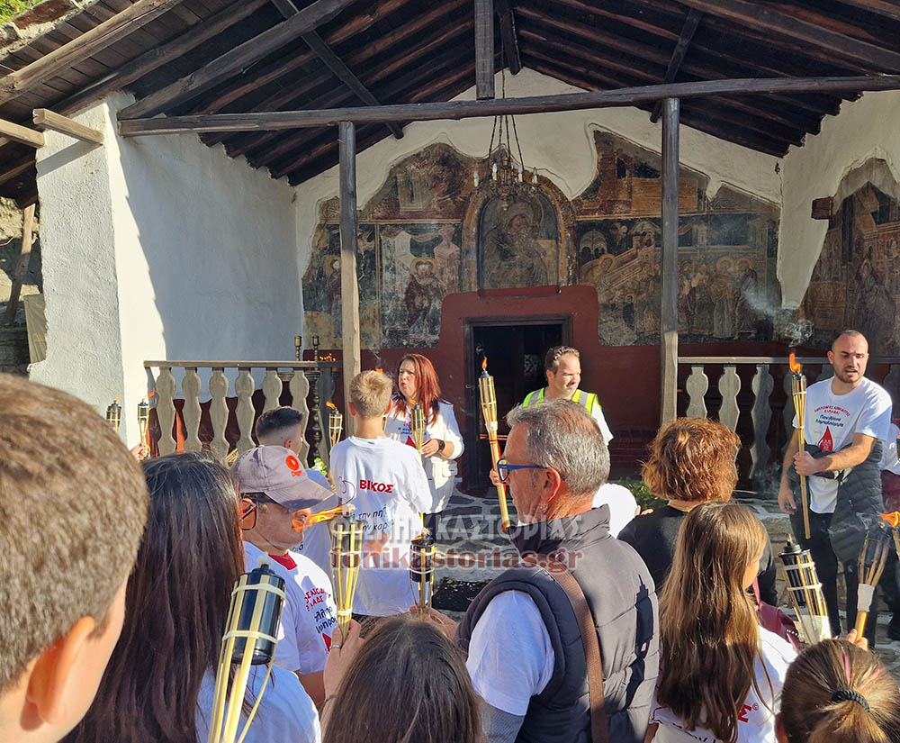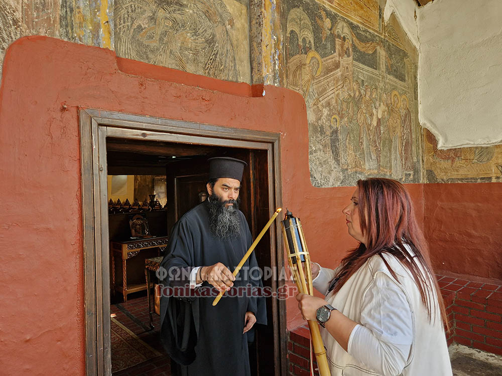 Τη φλόγα παρέδωσε στους λαμπαδηδρόμους ο εκπρόσωπος της Ιεράς Μητροπόλεως Καστορίας π. Χρήστος Μεσημέρης.