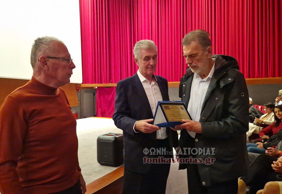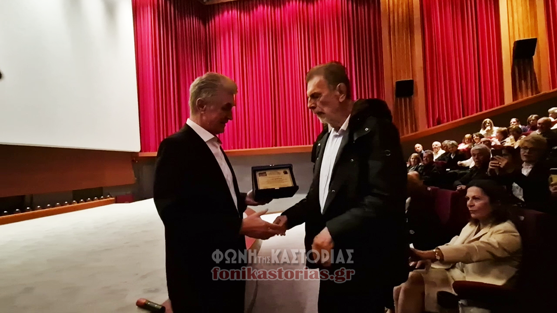 Ακολούθησε η τιμητική βράβευση του ηθοποιού και πρωταγωνιστή της ταινίας από τον πρόεδρο του Συλλόγου «Φίλοι Μουσείου Μακεδονικού Αγώνα Καστοριάς».
