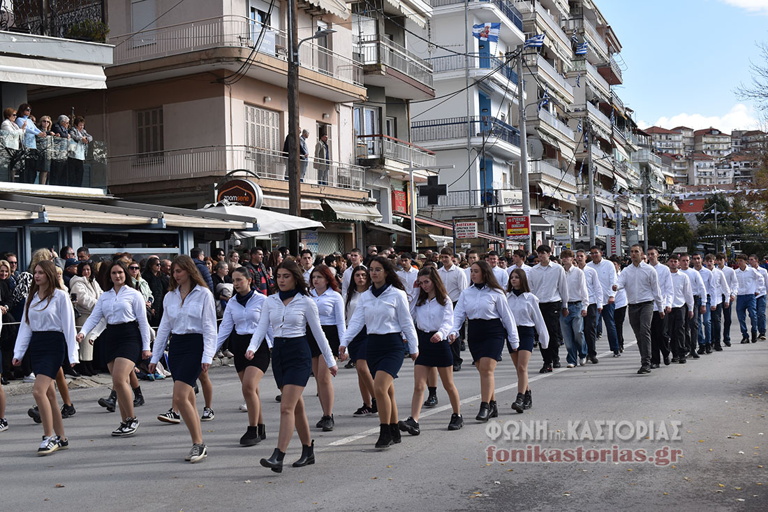 Αμέσως μετά, πραγματοποιήθηκε στην οδό Μ. Αλεξάνδρου μεγαλειώδης παρέλαση, συνοδεία της Μπάντας του Μπαϊρακτάρειου Δημοτικού Ωδείου Καστοριάς και της Στρατιωτικής Μουσικής της 9ης Ταξιαρχίας.