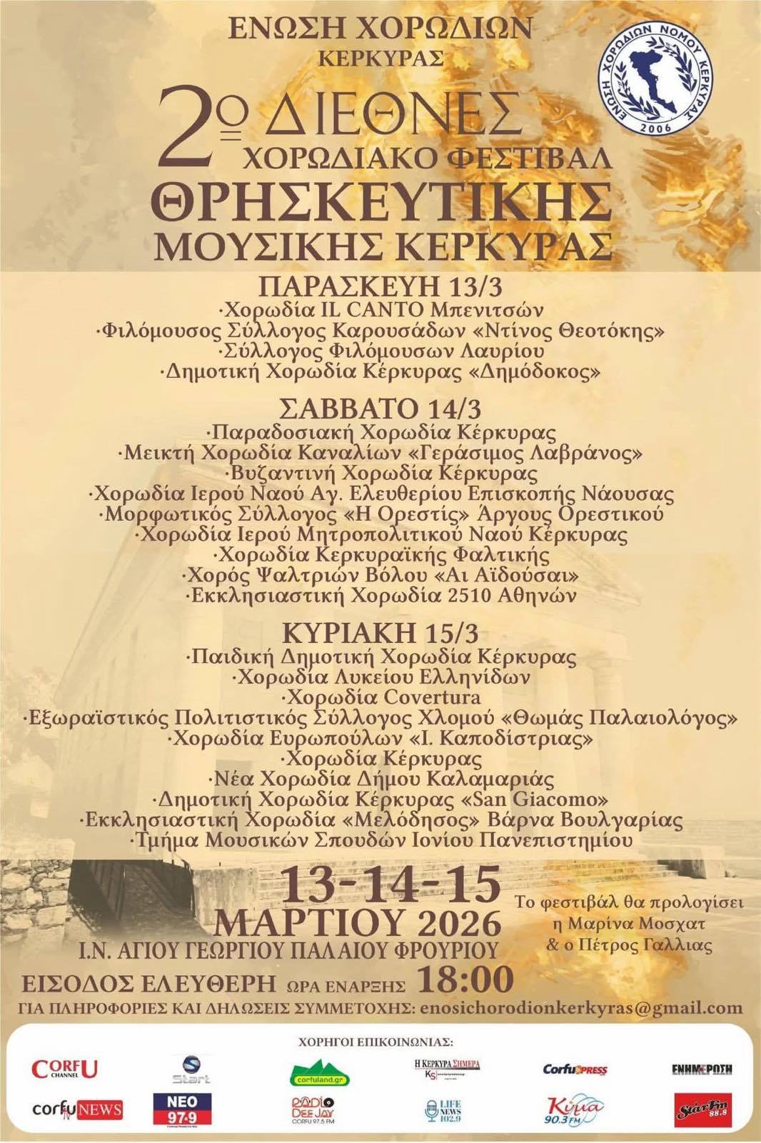 Στο 2ο Διεθνές Χορωδιακό Φεστιβάλ Θρησκευτικής Μουσικής Κέρκυρας, που έλαβε χώρα στο όμορφο νησί των Φαιάκων από 13-15 Μαρτίου 2026, συμμετείχε η Μικτή Πολυφωνική Χορωδία της Ορεστίδος!