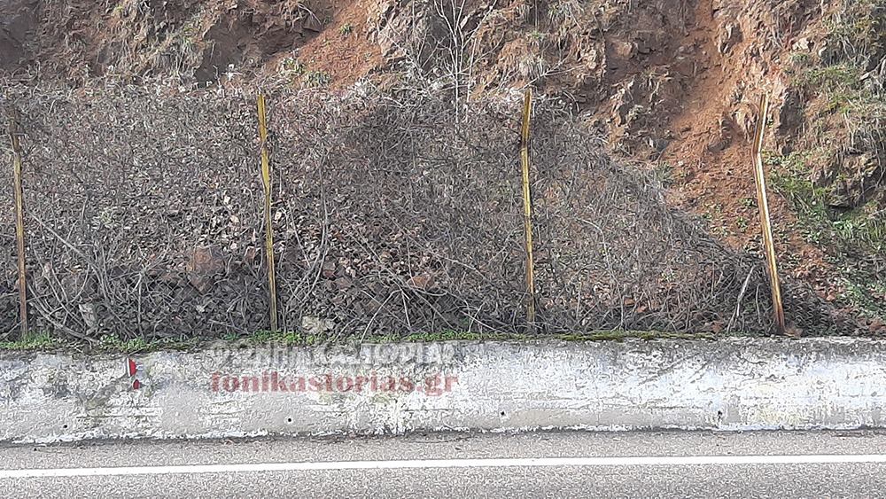 Το συρματόπλεγμα του τοιχίου συγκράτησης των κατολισθήσεων έχει καταστραφεί και έχει υπερφορτωθεί σε ορισμένα σημεία από τα χώματα και τις πέτρες και είναι θέμα χρόνου, αυτά να ξεχυθούν στο οδόστρωμα, με ό,τι αυτό συνεπάγεται στην ασφάλεια οχημάτων και οδηγών.