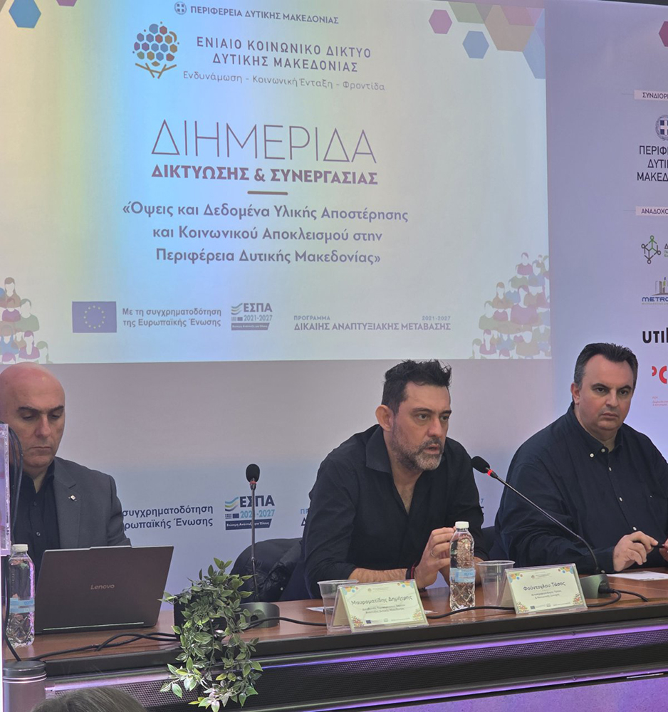 Με μεγάλη συμμετοχή και εποικοδομητική ατμόσφαιρα ολοκληρώθηκε η Διημερίδα για την Κοινωνική Ένταξη που διοργάνωσε η Περιφέρεια Δυτικής Μακεδονίας, στο πλαίσιο του Ενιαίου Κοινωνικού Δικτύου που χρηματοδοτείται από το Πρόγραμμα Δίκαιης Αναπτυξιακής Μετάβασης. Η εκδήλωση συγκέντρωσε εκπροσώπους από όλες τις Περιφερειακές Ενότητες (Κοζάνη, Γρεβενά, Καστοριά, Φλώρινα), ανώτερα στελέχη φορέων, καθηγητές πανεπιστημίων και ερευνητές, αλλά κυρίως κοινωνικούς επιστήμονες / στελέχη κοινωνικών δομών των Δήμων που με ζήλο και αφοσίωση συμμετείχαν σε έναν δημιουργικό διάλογο για το πλαίσιο της κοινωνικής πολιτικής στην περιοχή.