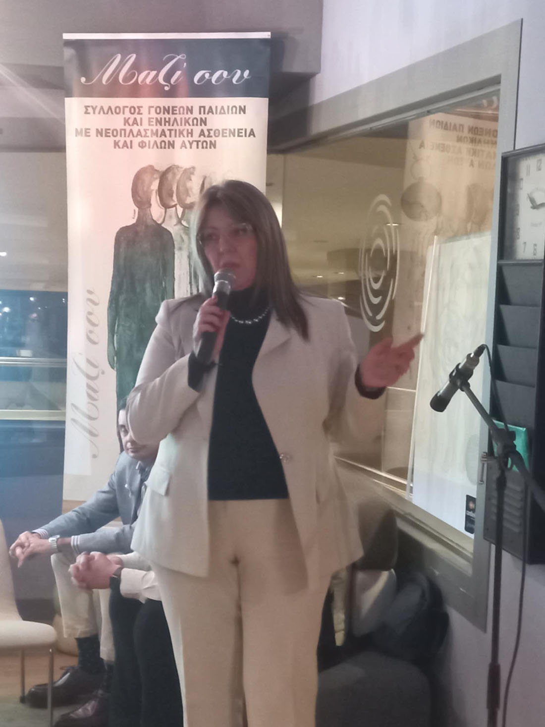 Ιδιαίτερη συγκίνηση προκάλεσαν οι κυρίες Ιωάννα Σακαλή και Αθηνά Φίσκα, που μοιράστηκαν με θάρρος τη βιωματική τους εμπειρία από τη μάχη με τον καρκίνο του μαστού, προσφέροντας ένα μήνυμα πίστης, δύναμης και ελπίδας προς όλες τις γυναίκες.