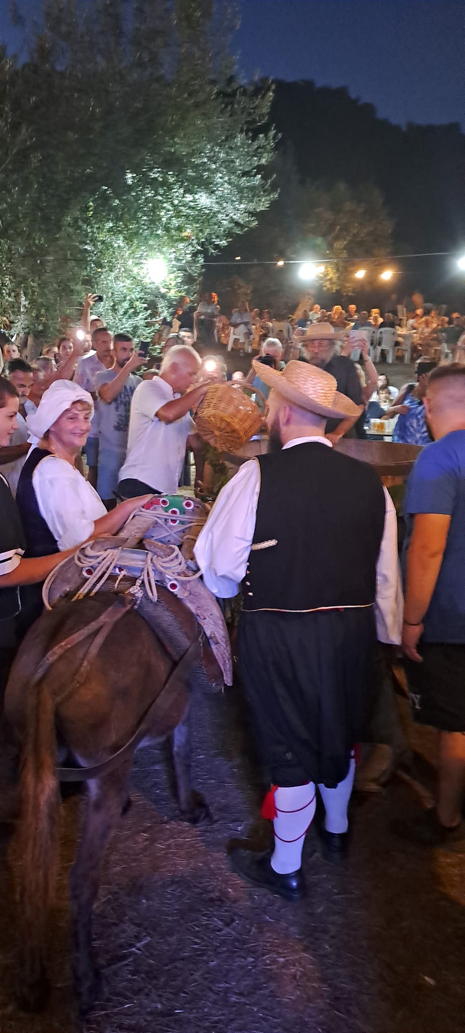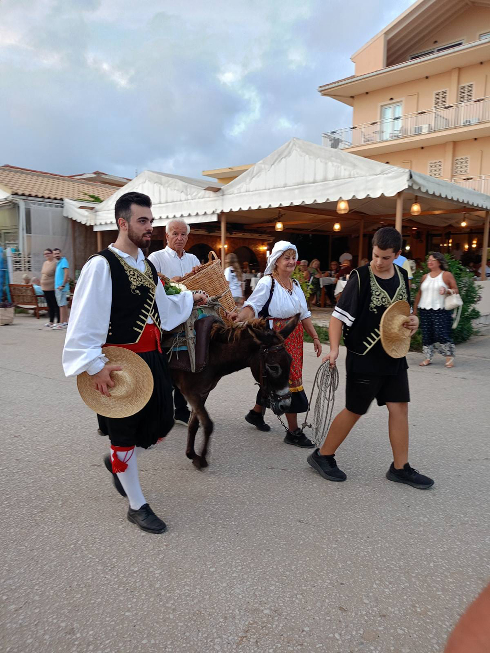 Η εκδήλωση ξεκίνησε με πατινάδα των δύο Χορευτκών έως την όμορφη και γραφική παραλία του Αρίλλα, συνοδεία παραδοσιακής τοπικής ορχήστρας. Μπροστά ήταν το συμπαθές γαϊδουράκι που μετέφερε δύο κοφίνια με σταφύλια του τρύγου!