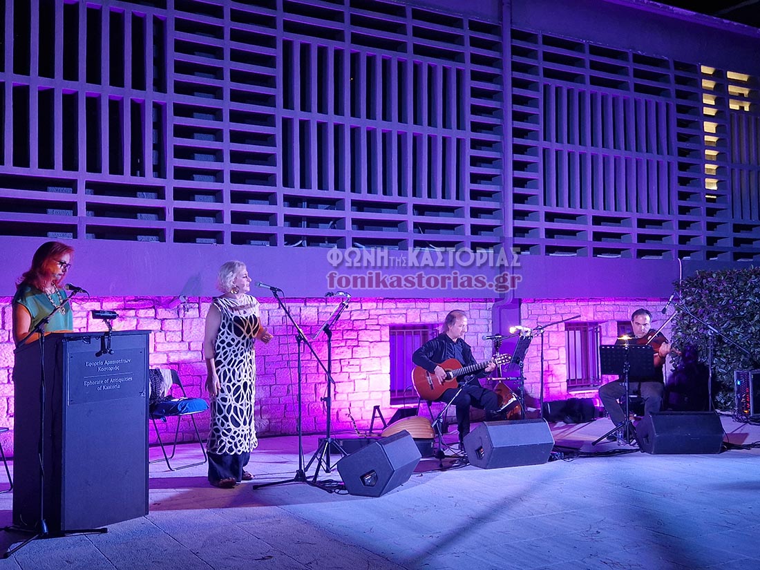 Τους παρευρισκόμενους καλωσόρισε η προϊσταμένη της ΕΦΑ Καστοριάς Ανδρομάχη Σκρέκα. Χαιρετισμό απηύθυναν η αντιπρόεδρος του Σωματείου Φίλων Βυζαντινού Μουσείου και Μνημείων Καστοριάς Αναστασία Ατζέμη και ο συνθέτης Σάκης Παπαδημητρίου.