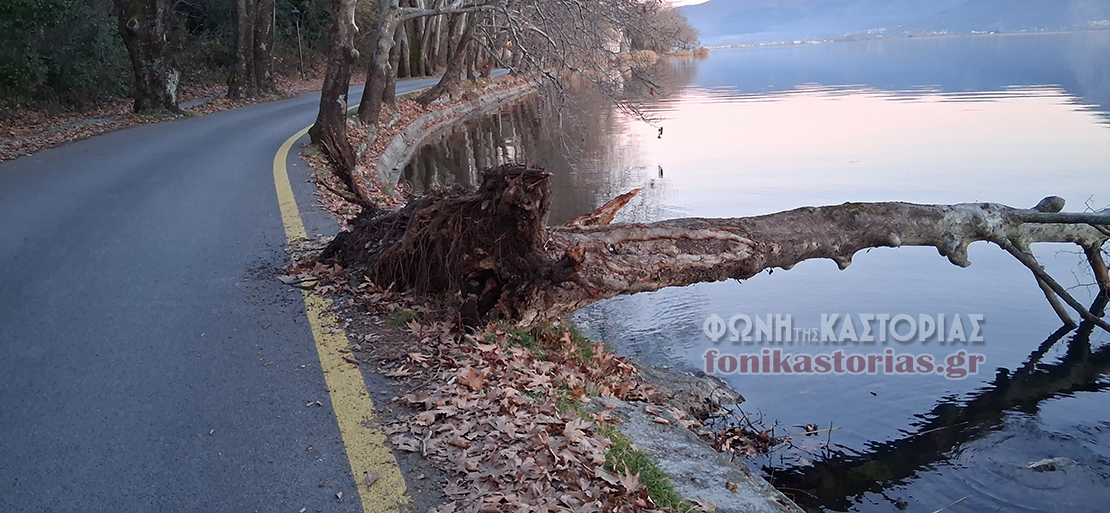 Πηγαίνοντας για την Μαυριώτισσα και λίγο πρίν την “Σπηλιά του Δράκου”, ένα πλατάνι έχει ξεριζωθεί, «τινάζοντας» την άσφαλτο κι έχει πέσει στη λίμνη, δημιουργώντας μια αντιαισθητική εικόνα, παράλληλα δε και κίνδυνο για τα οχήματα, μια που οι ρίζες του βρίσκονται πάνω στο δρόμο, όπως δείχνουν και οι φωτογραφίες μας.