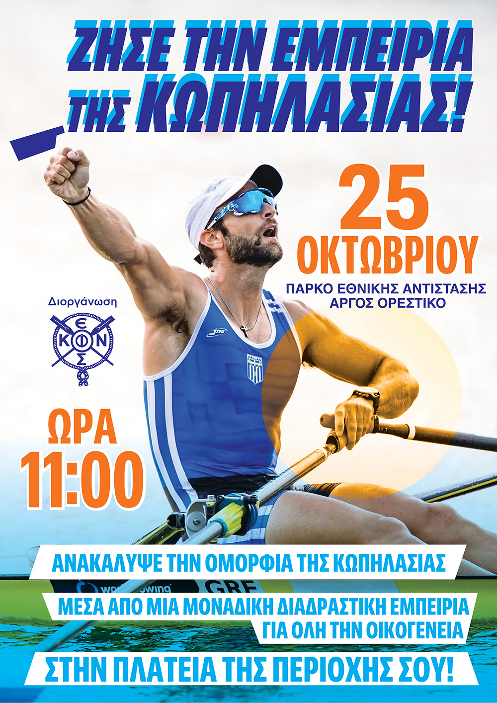 Η εκδήλωση θα πραγματοποιηθεί στο Πάρκο Εθνικής Αντίστασης Άργους Ορεστικού και έχει ως στόχο να φέρει το άθλημα της Κωπηλασίας πιο κοντά στο κοινό, να το γνωρίσουν μικροί και μεγάλοι και να εμπνευστούν από τις αξίες της ομαδικότητας, της πειθαρχίας και της προσπάθειας.