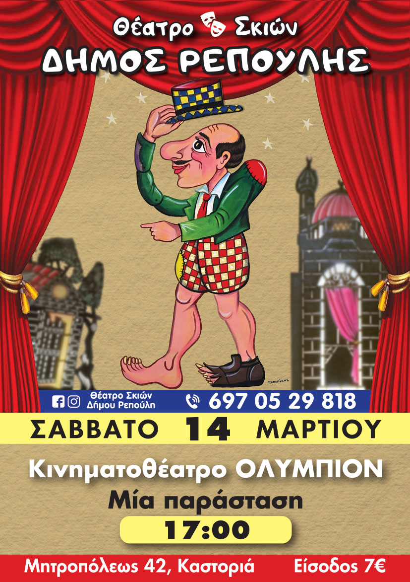 – Σάββατο 14 Μαρτίου, στο Κινηματοθέατρο “ΟΛΥΜΠΙΟΝ” (Μητροπόλεως 42, Καστοριά) για ΜΙΑ παράσταση στις 17:00