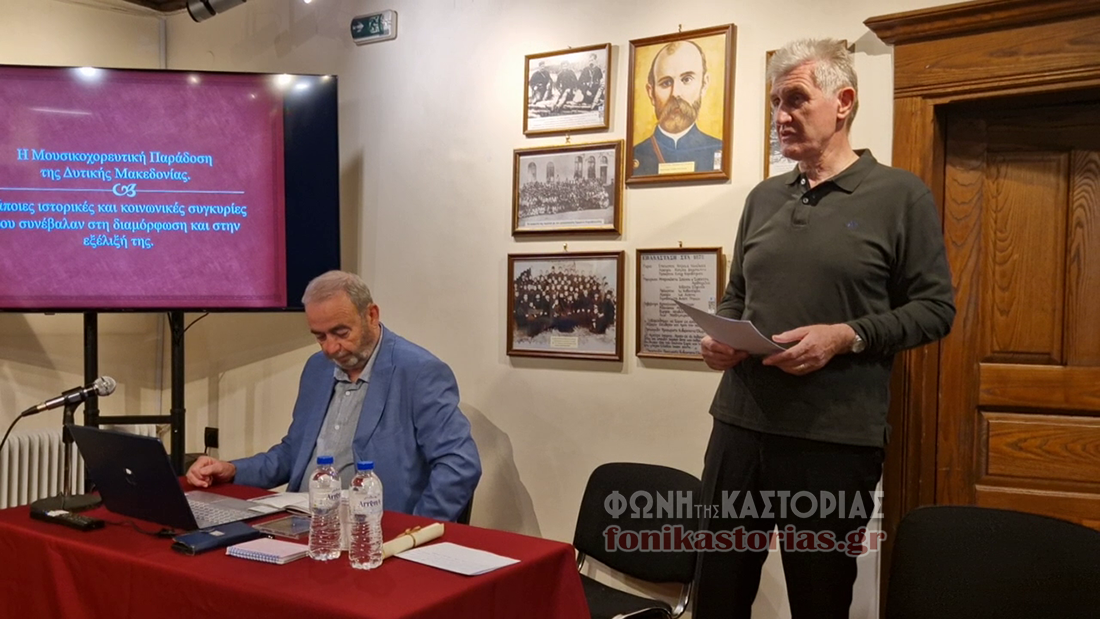 «Η μουσικοχορευτική παράδοση στη Δυτική Μακεδονία – Ιστορικές και κοινωνικές συγκυρίες που συνέβαλαν στη διαμόρφωση και την εξέλιξή της», ήταν το θέμα της ομιλίας που πραγματοποιήθηκε χθές το απόγευμα, στην κατάμεστη αίθουσα του Μουσείου Μακεδονικού Αγώνα Καστοριάς.