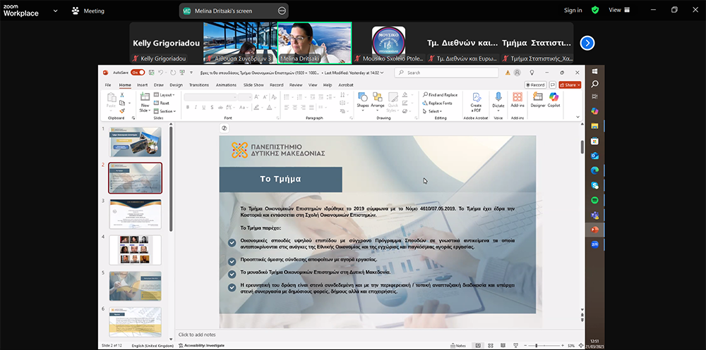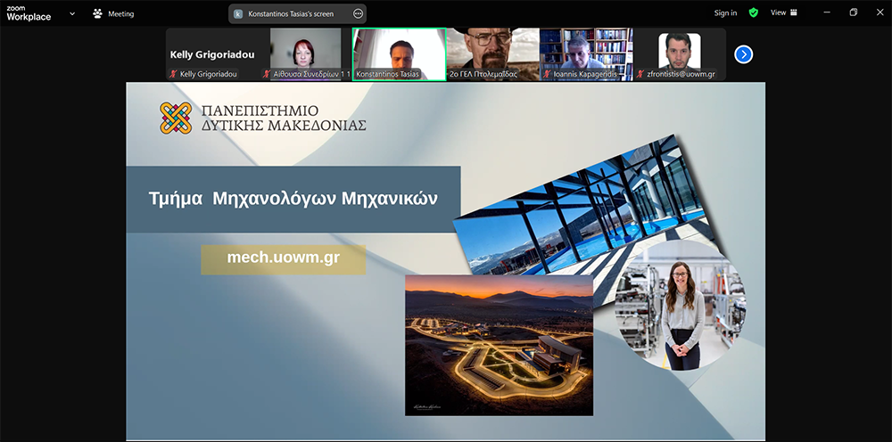 Το Πανεπιστήμιο Δυτικής Μακεδονίας πραγματοποίησε διαδικτυακές παρουσιάσεις των τμημάτων του στους μαθητές της Γ’ Λυκείου των Λυκείων της Περιφέρειας Δυτικής Μακεδονίας, στο πλαίσιο της ετήσιας δράσης “Βρες τι θα Σπουδάσεις”. Μέσα από τέσσερις παράλληλες αίθουσες Zoom, μία για κάθε επιστημονικό πεδίο, οι μαθητές είχαν την ευκαιρία να ενημερωθούν για τις ακαδημαϊκές και επαγγελματικές δυνατότητες που προσφέρει το Ίδρυμα και να συζητήσουν με τα μέλη του διδακτικού προσωπικού για τα αντικείμενα σπουδών.