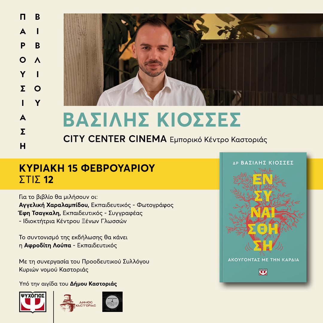 Και δεν υπάρχει καλύτερη αφορμή να σας προσκαλέσω την Κυριακή 15/2 στις 12.00 στο City Center Cinemas Kastoria να μιλήσουμε, όχι για το βιβλίο αλλά για εμάς.