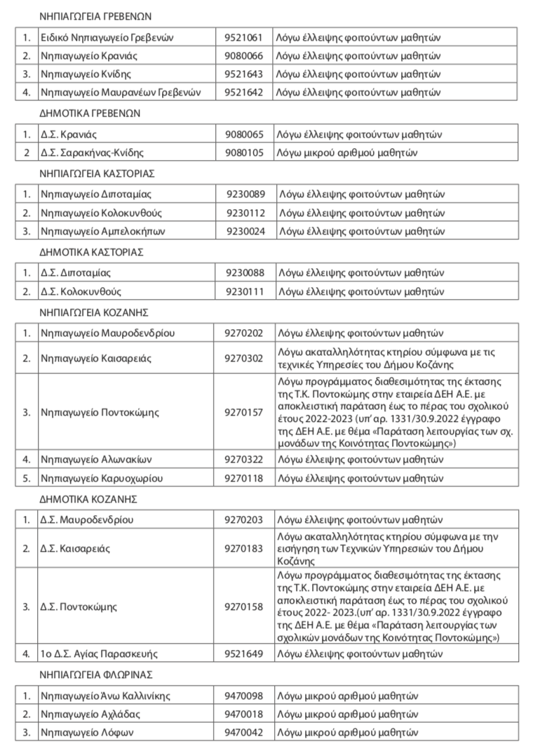Μετά τις συγχωνεύσεις, αναστέλλεται και η λειτουργία Δημοτικών και Νηπιαγωγείων στη Δυτική Μακεδονία, όπως αναφέρει ο πρόεδρος του Συλλόγου Εκπαιδευτικών Κοζάνης Αθ. Κωτούλας, παραθέτοντας τον σχετικό πίνακα.