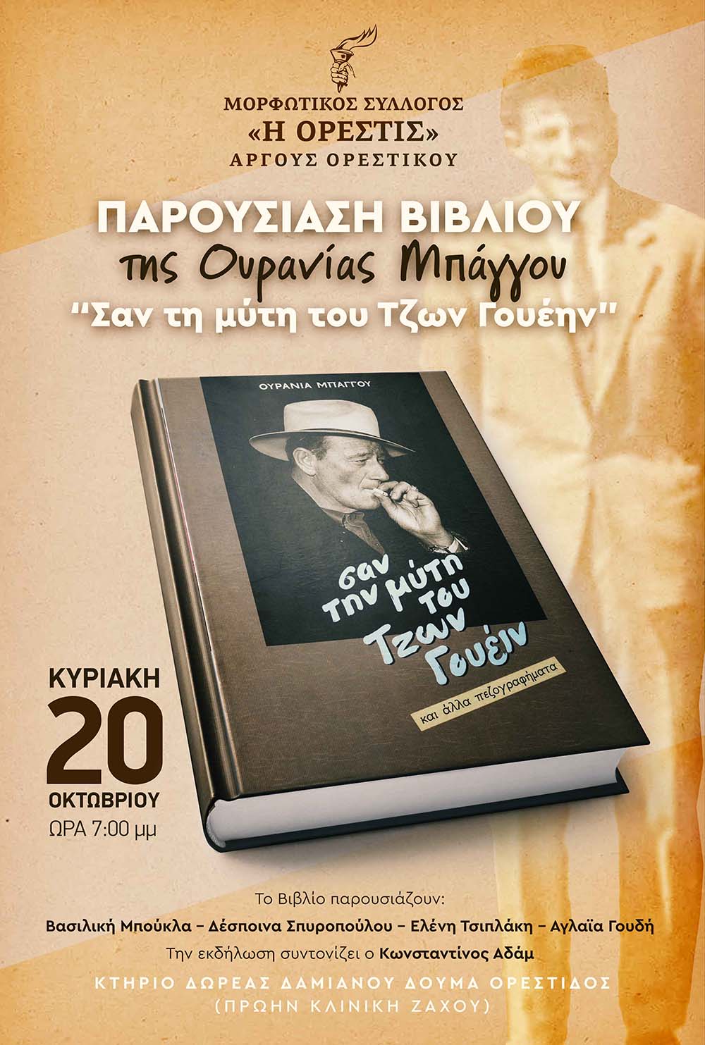 Την εκδήλωση συντονίζει ο Πρόεδρος της «Ορεστίδος» Κωνσταντίνος Αδάμ