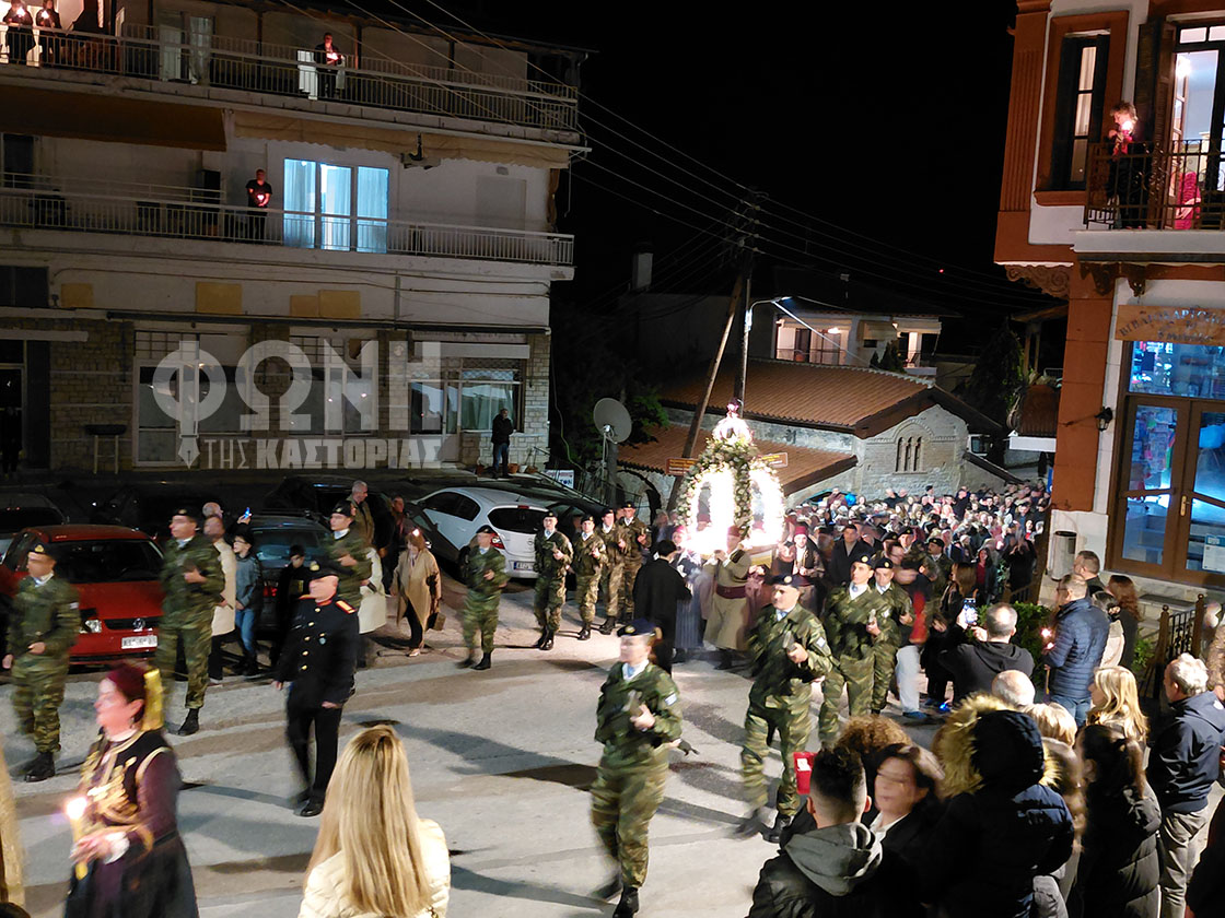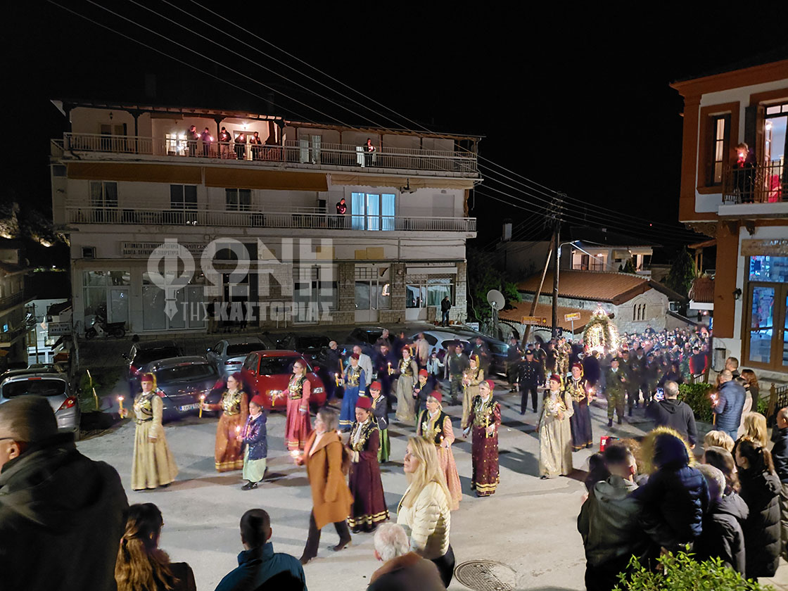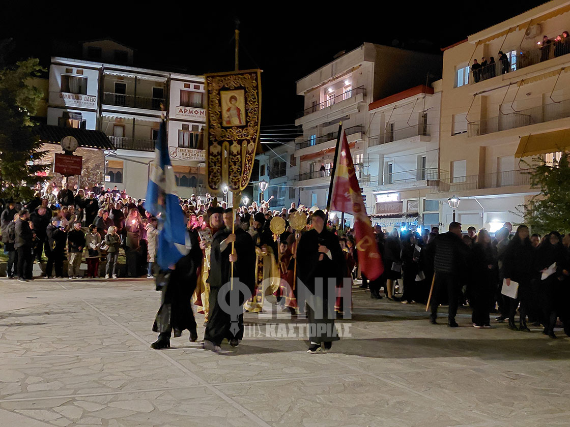 Τον Επιτάφιο της Ιεράς Μητροπόλεως συνόδευαν άγημα του Στρατού, η χορωδία του Μουσικού Σχολείου Καστοριάς, η Φιλαρμονική του Δήμου Καστοριάς και μέλη των συλλόγων “Αθανάσιος Χριστόπουλος” και Μ/Σ “Αρμονία”, με παραδοσιακές φορεσιές.