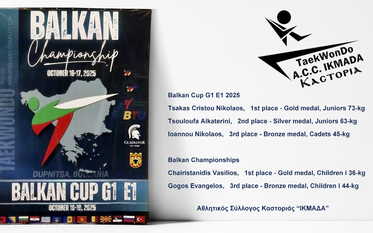 Σημαντικές οι επιτυχίες του Συλλόγου μας στα Βαλκανικά Πρωταθλήματα Balkan Championships 2025 και Balkan Cup G1 E1 2025, αποδεικνύοντας για ακόμη μία φορά το υψηλό επίπεδο των αθλητών του και τη συστηματική δουλειά που γίνεται στο σύλλογο.