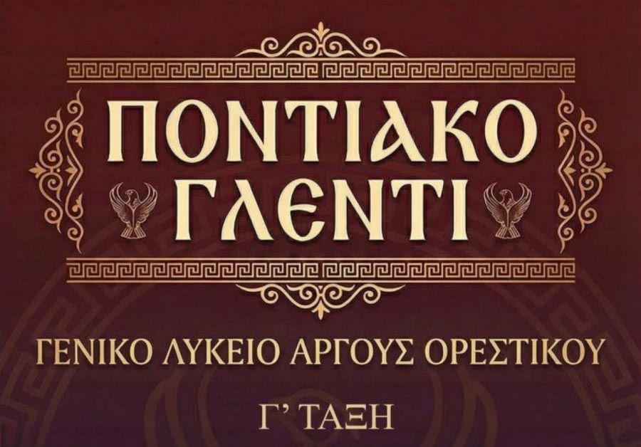 Η Γ’ Τάξη του Γενικού Λυκείου Άργους Ορεστικού σας προσκαλεί σε ένα αυθεντικό Ποντιακό Γλέντι, μια ξεχωριστή βραδιά γεμάτη ποντιακή παράδοση, μουσική και χορό. Η εκδήλωση θα πραγματοποιηθεί την Παρασκευή 6 Φεβρουαρίου και ώρα 21:30 στο κέντρο “Ακρόαμα” στο Άργος Ορεστικό, με ζωντανή μουσική από καταξιωμένους μουσικούς στα πλήκτρα, τη λύρα και το νταούλι, ενώ ξεχωριστή παρουσία θα έχει το χορευτικό της Ευξείνου Λέσχης Άργους Ορεστικού με παραδοσιακούς ποντιακούς χορούς. Με την είσοδο των 7€ εξασφαλίζεται αυτόματη συμμετοχή σε κλήρωση πλούσιων δώρων. Κρατήσεις στο τηλέφωνο 6972889262 ή στο 2467044290. Σας περιμένουμε όλους!