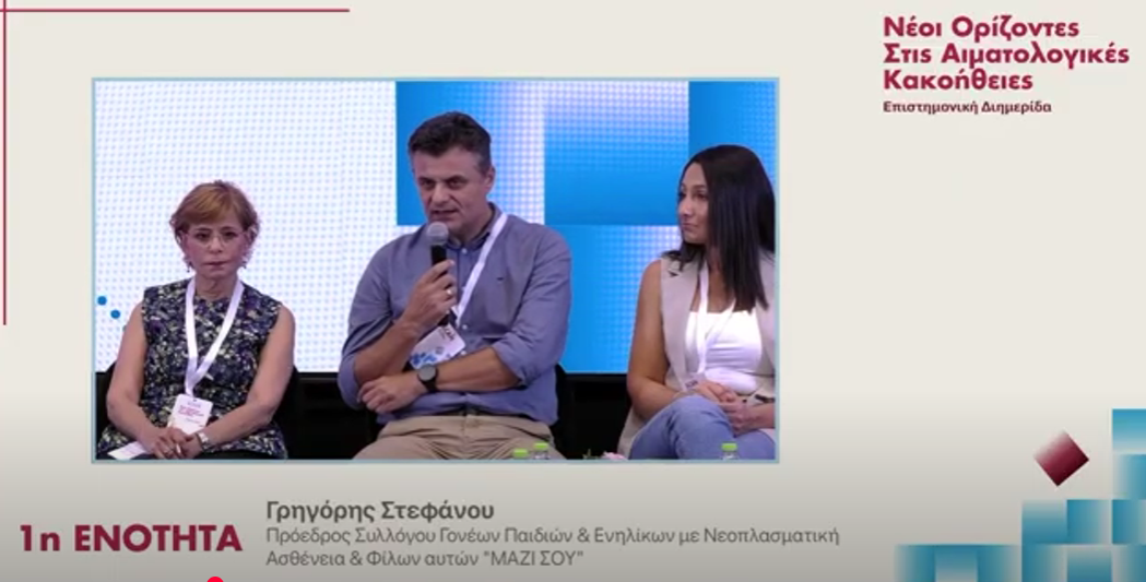 Το Σύλλογο ΓΟΝΕΩΝ ΠΑΙΔΙΩΝ ΚΑΙ ΕΝΗΛΙΚΩΝ ΜΕ ΝΕΟΠΛΑΣΜΑΤΙΚΗ ΑΣΘΕΝΕΙΑ ΚΑΙ ΦΙΛΩΝ ΑΥΤΩΝ «ΜΑΖΙ ΣΟΥ» εκπροσώπησαν στην διημερίδα ο Πρόεδρος Στεφάνου Γρηγόρης και η Γραμματέας Μουσουλή Αλεξάνδρα.