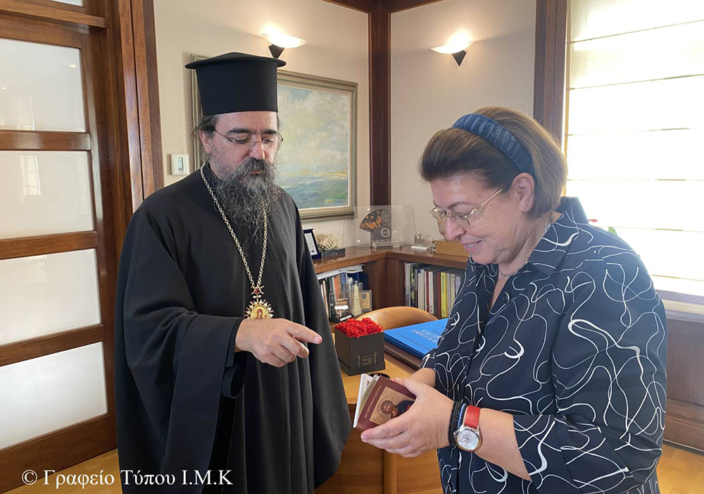 Ὁ Σεβασμιώτατος συζήτησε μαζί τους θέματα τα ὁποῖα ἀφοροῦν την ἐπαρχία μας καί εἰδικότερα το κοινωνικό ἔργο τῆς Ἱερᾶς Μητροπόλεως, τά ἐκκλησιαστικά μνημεῖα, τίς προσκυνηματικές περιηγήσεις κ.ἄ.