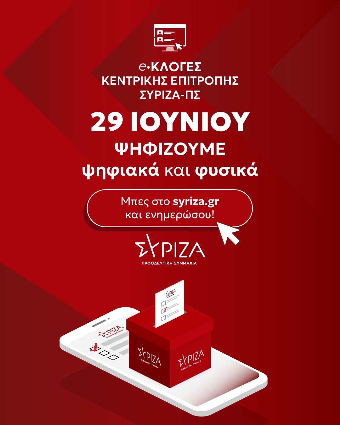 Την Κυριακή 29 Ιουνίου θα διεξαχθούν οι εκλογές για την ανάδειξή Κεντρικής Επιτροπής του ΣΥΡΙΖΑ – Προοδευτική Συμμαχία.
