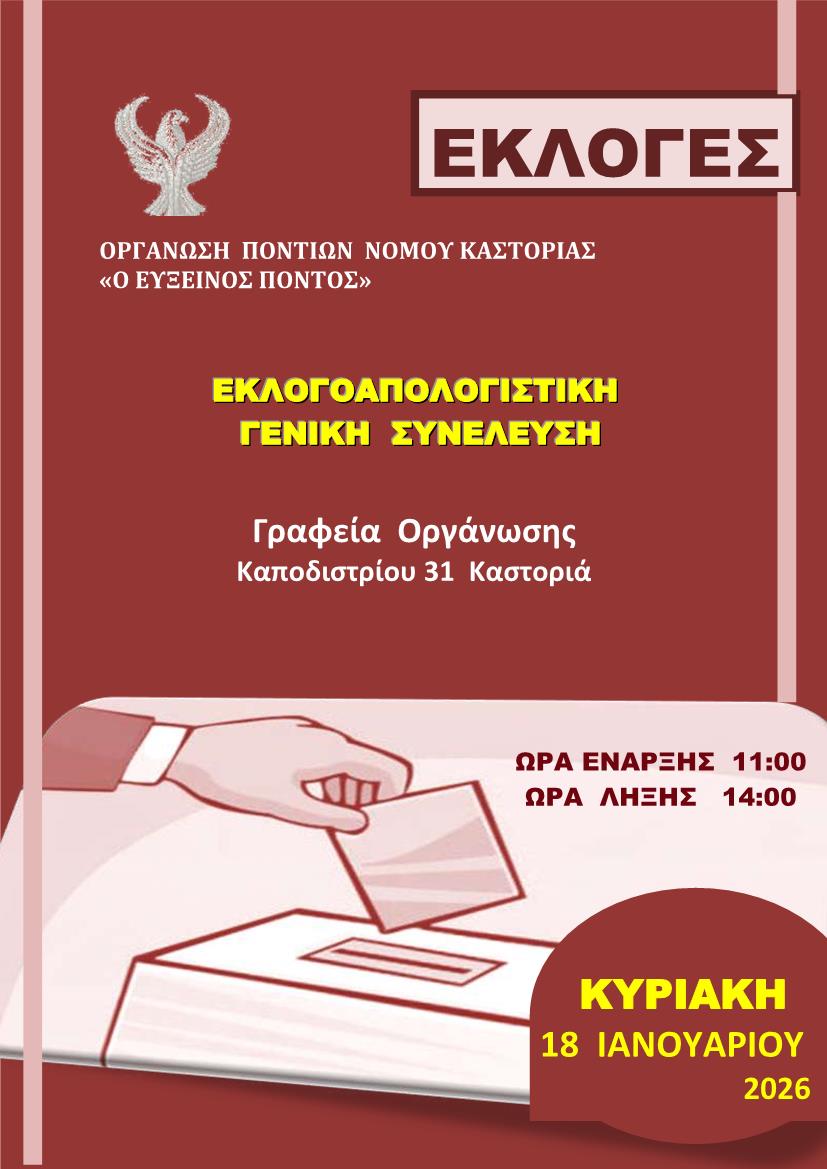 Εν όψει της τακτικής Εκλογοαπολογιστικής Γενικής Συνέλευσης που θα πραγματοποιηθεί την Κυριακή 18 Ιανουαρίου 2026, στα γραφεία του συλλόγου ( Ι. Καποδιστρίου 33) προσκαλούμε όλα τα μέλη και τους φίλους του συλλόγου να συμμετέχουν .