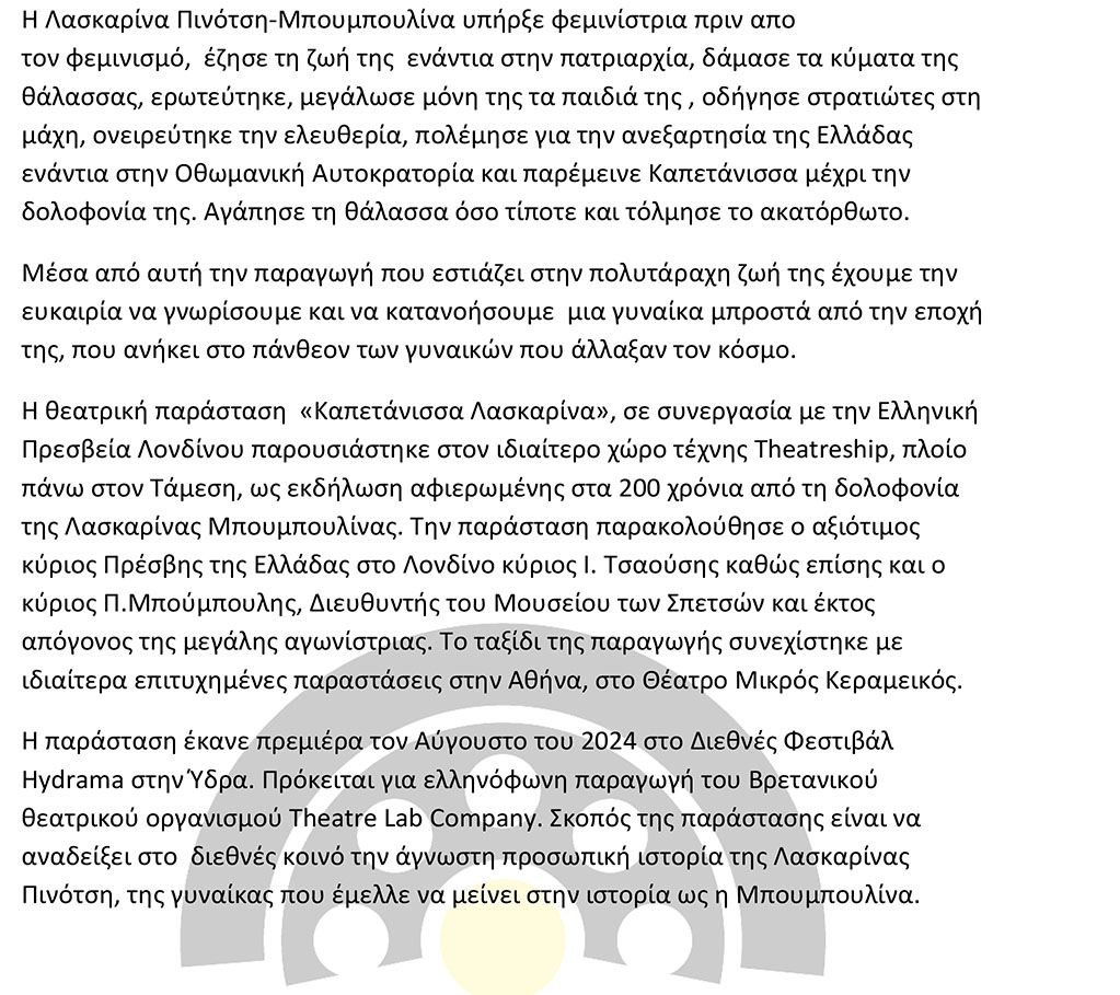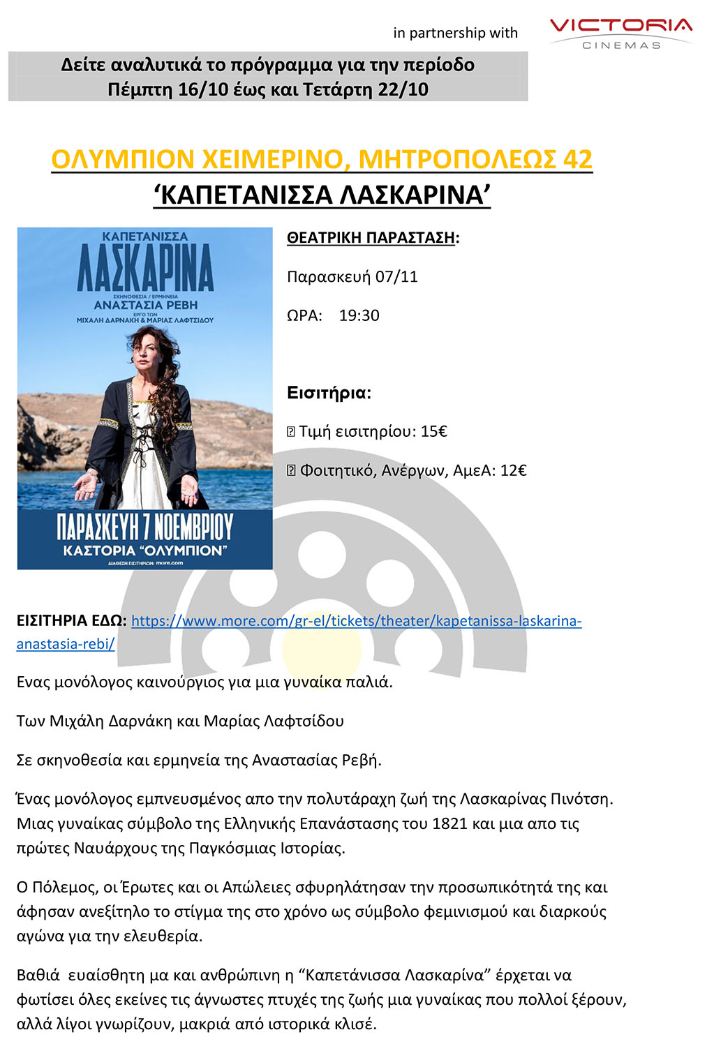 Το fonikastorias.gr κληρώνει 2 διπλές προσκλήσεις για τη θεατρική παράσταση “Καπετάνισσα Λασκαρίνα” στο ΟΛΥΜΠΙΟΝ! Για να