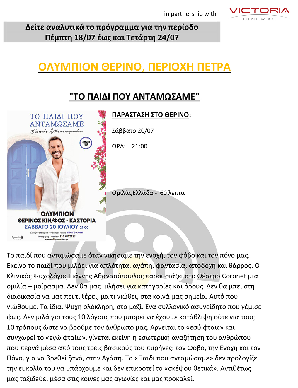 Εισιτήρια: https://www.more.com/theater/to-paidi-pou-antamosame-summer-tour/