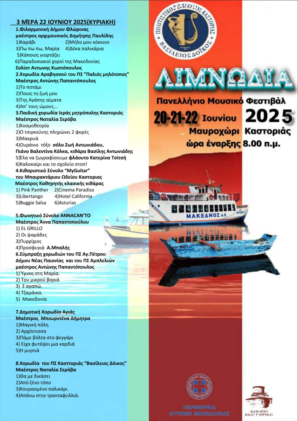 « Διοργανώνουμε φέτος και για δεύτερη συνεχόμενη χρονιά, το Πανελλήνιο Μουσικό Φεστιβάλ «Λιμνωδία», με την στήριξη της Περιφέρειας Δυτικής Μακεδονίας, της Περιφερειακής Ενότητας Καστοριάς και του Δήμου Καστοριάς.